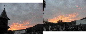 Răsăritul soarelui ne prinde în cimitirul satului Luminiș, …