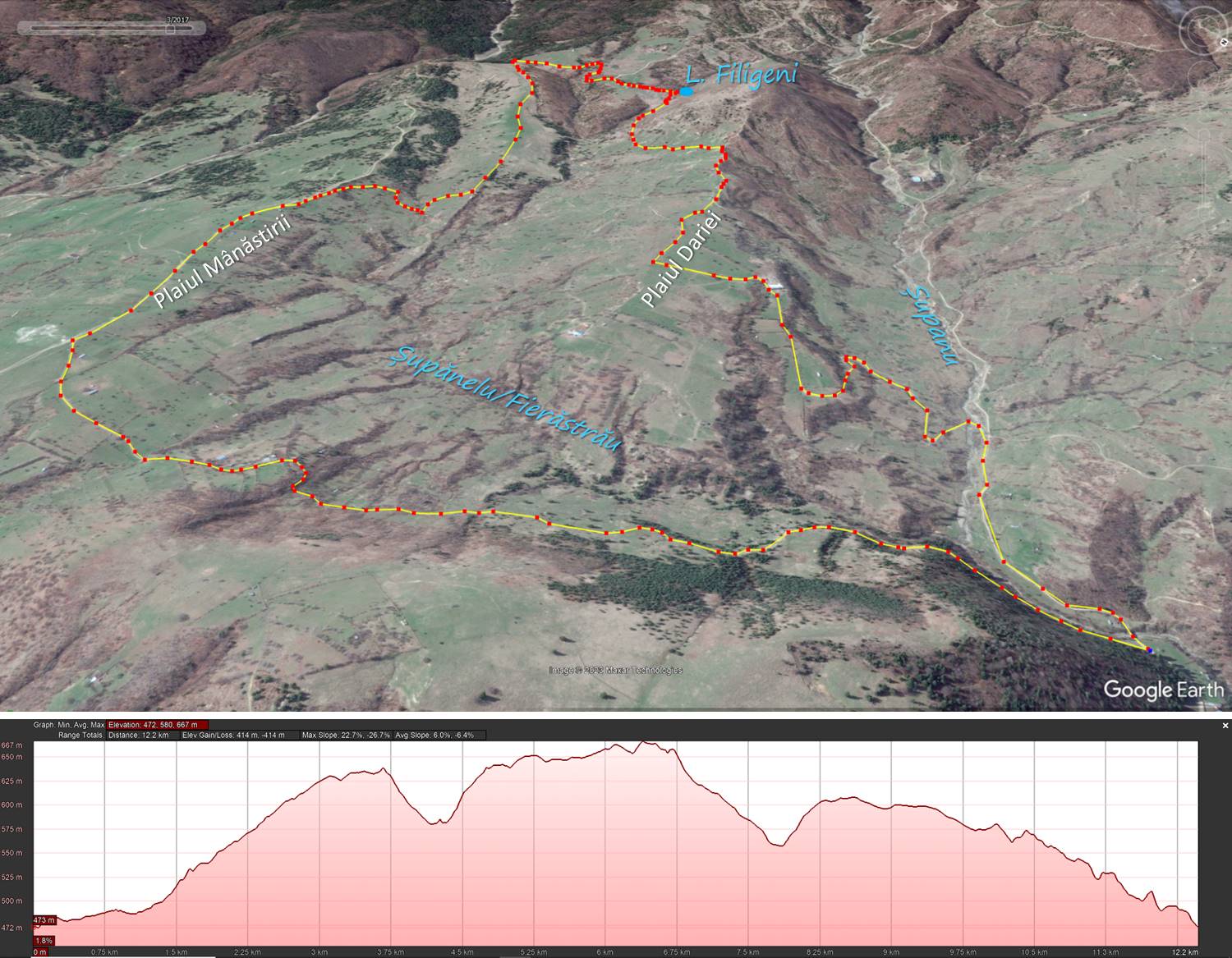 Traseu: COMĂNEȘTI (Valea Șupanului – Gura Șupănelului) – Culmea Dariei – Lacul Filigeni – Plaiul Mânăstirii – Gura Fierăstrăului
