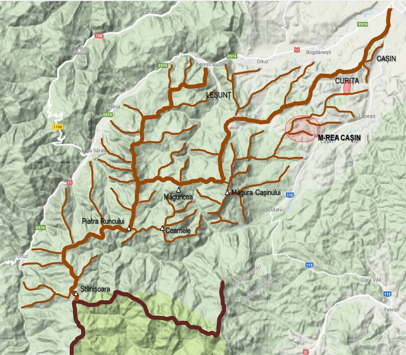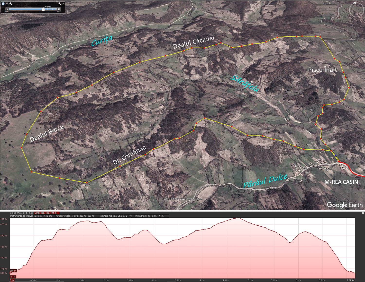 Traseu: M-REA CAȘIN (Gura Sărățelului) – Dl. Piscu Înalt – Dl. Căciula – Dl. Berca – Dl. Comănac – Gura Sărățelului