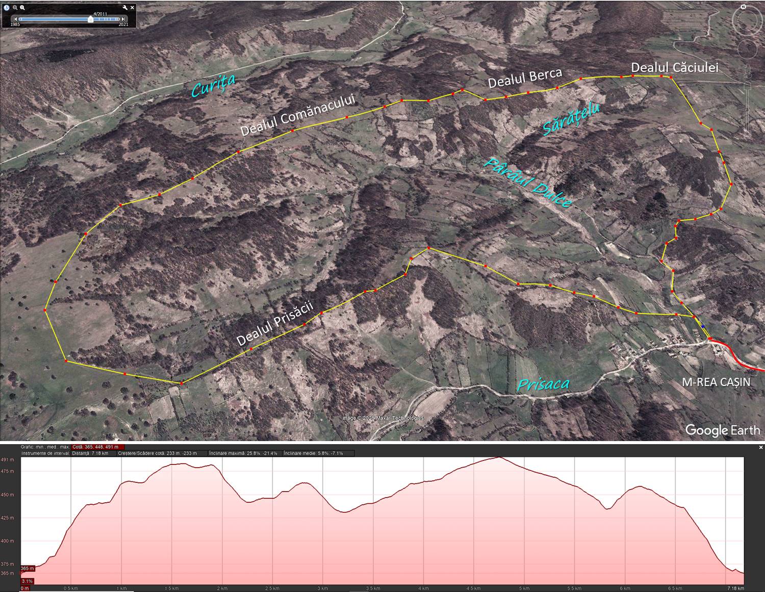 Traseu: M-REA CAȘIN (Gura P. Dulce) – Dl. Căciula – Dl. Berca – Dl. Comănac – Dl. Prisăcii – – Gura P. Dulce
