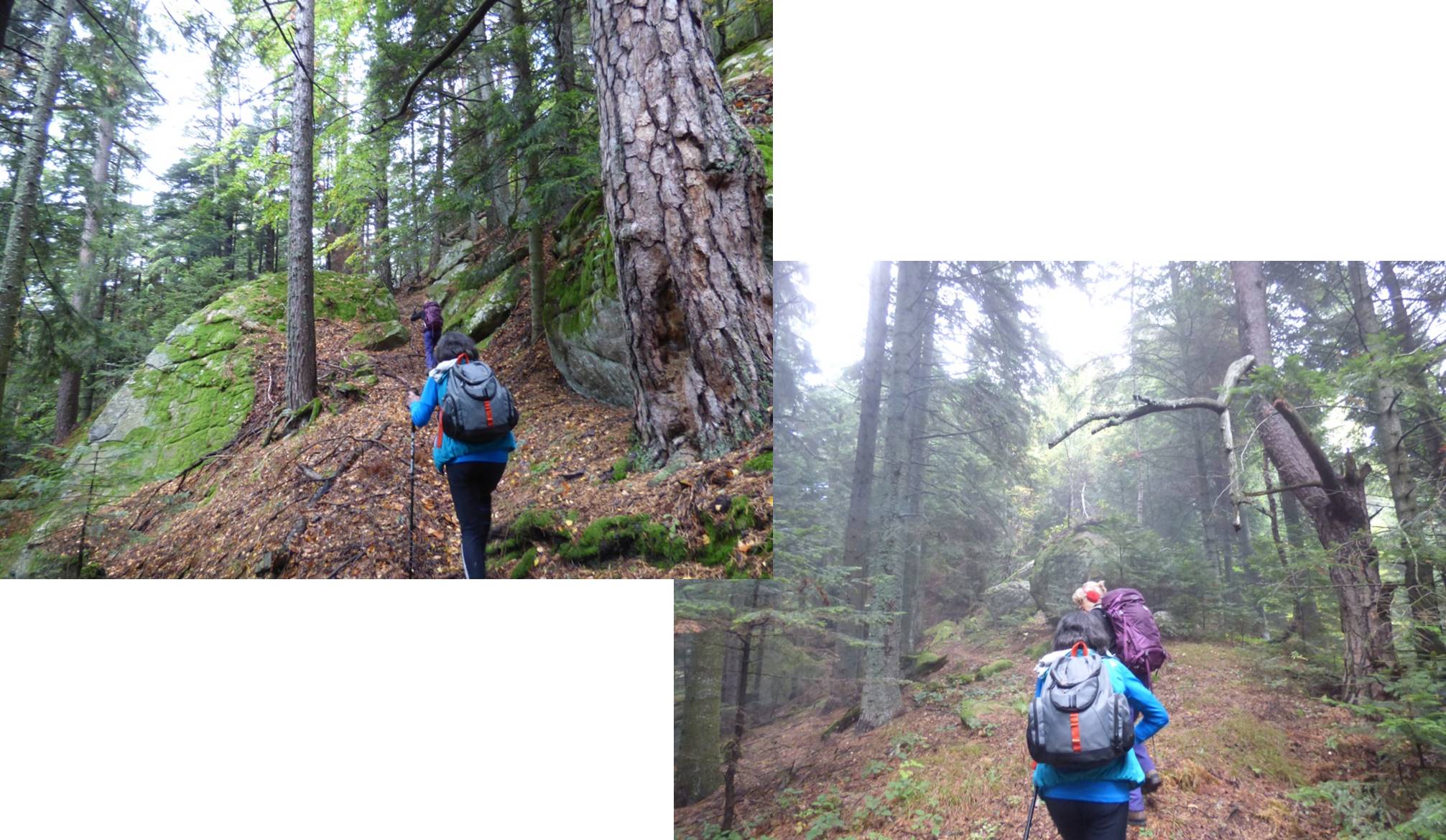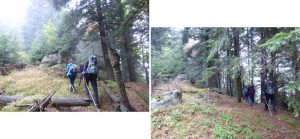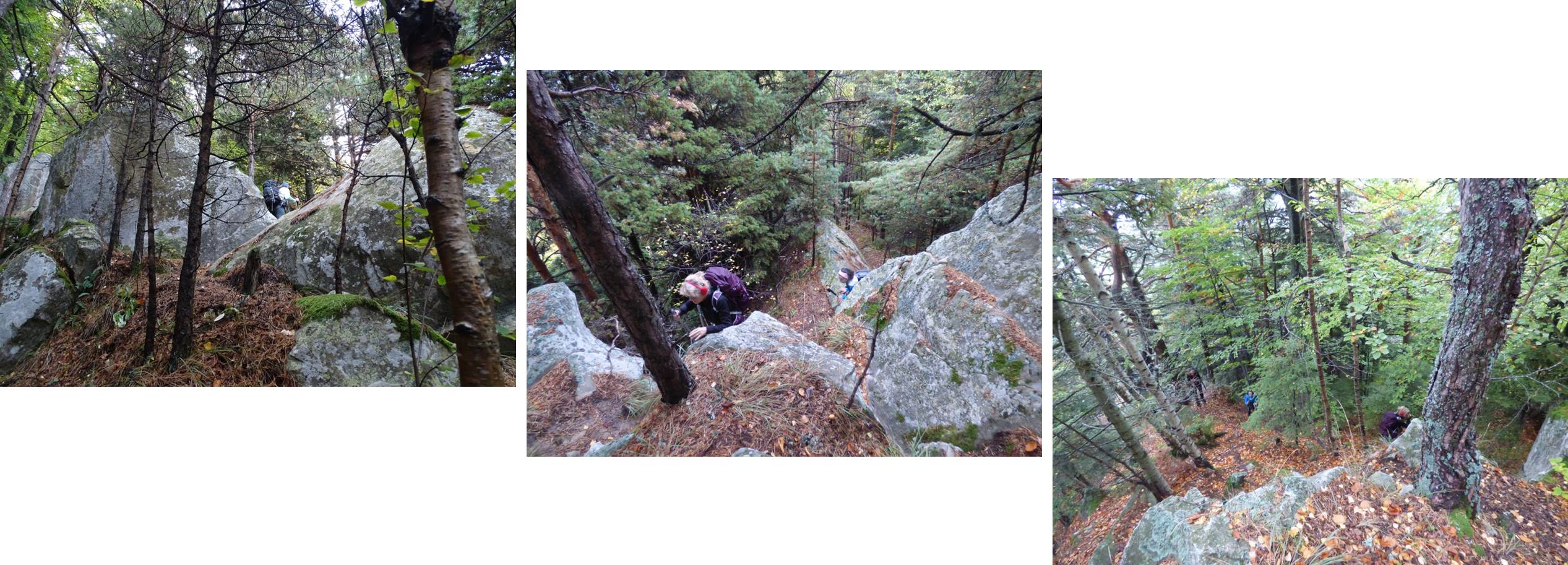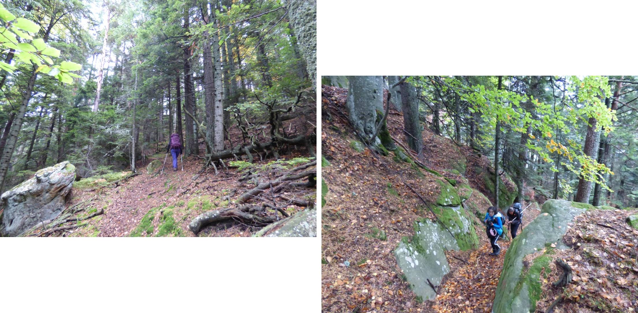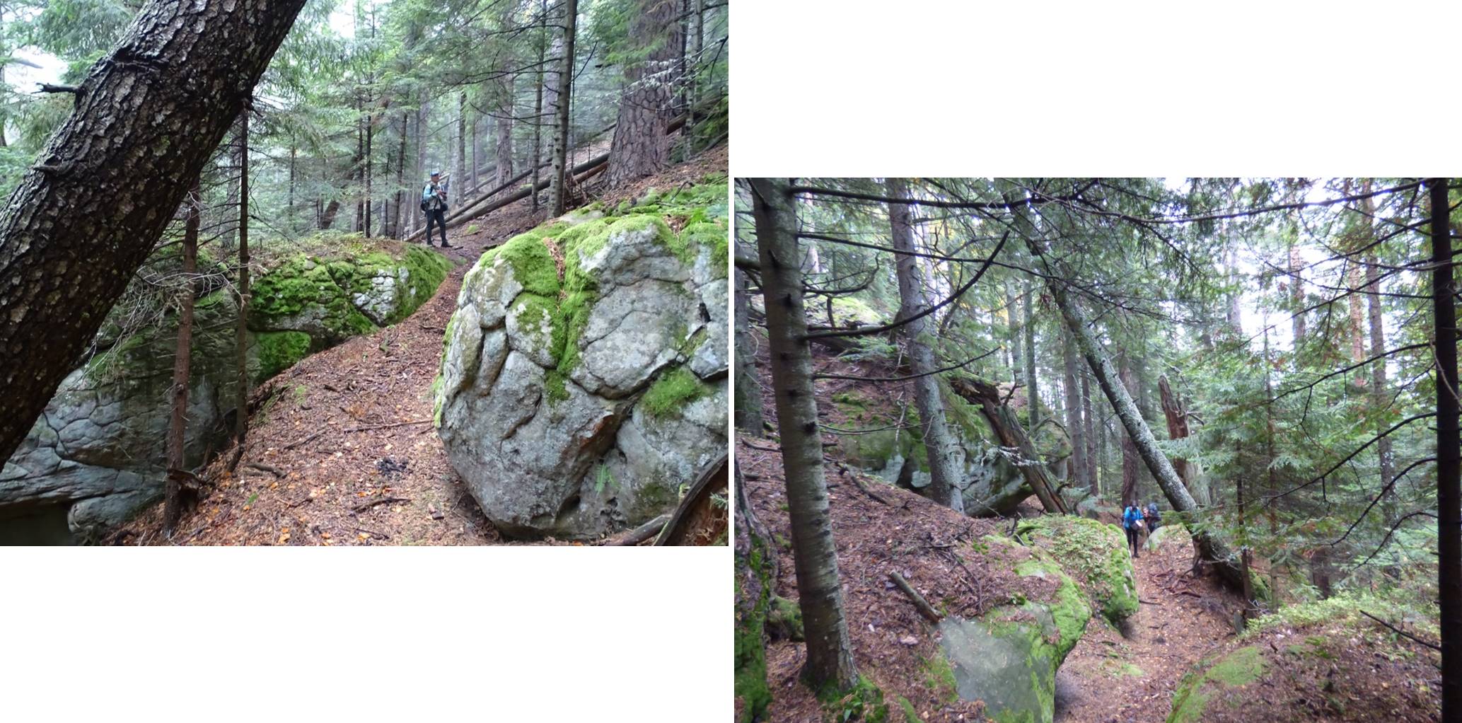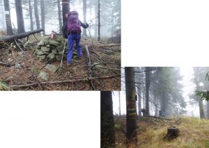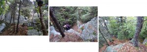 … nu mult timp, căci dăm peste un sector, unde culmea are un puseu altitudinal, greu de străbătut din cauza stâncăriei și a arborilor căzuți !