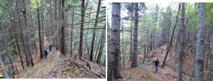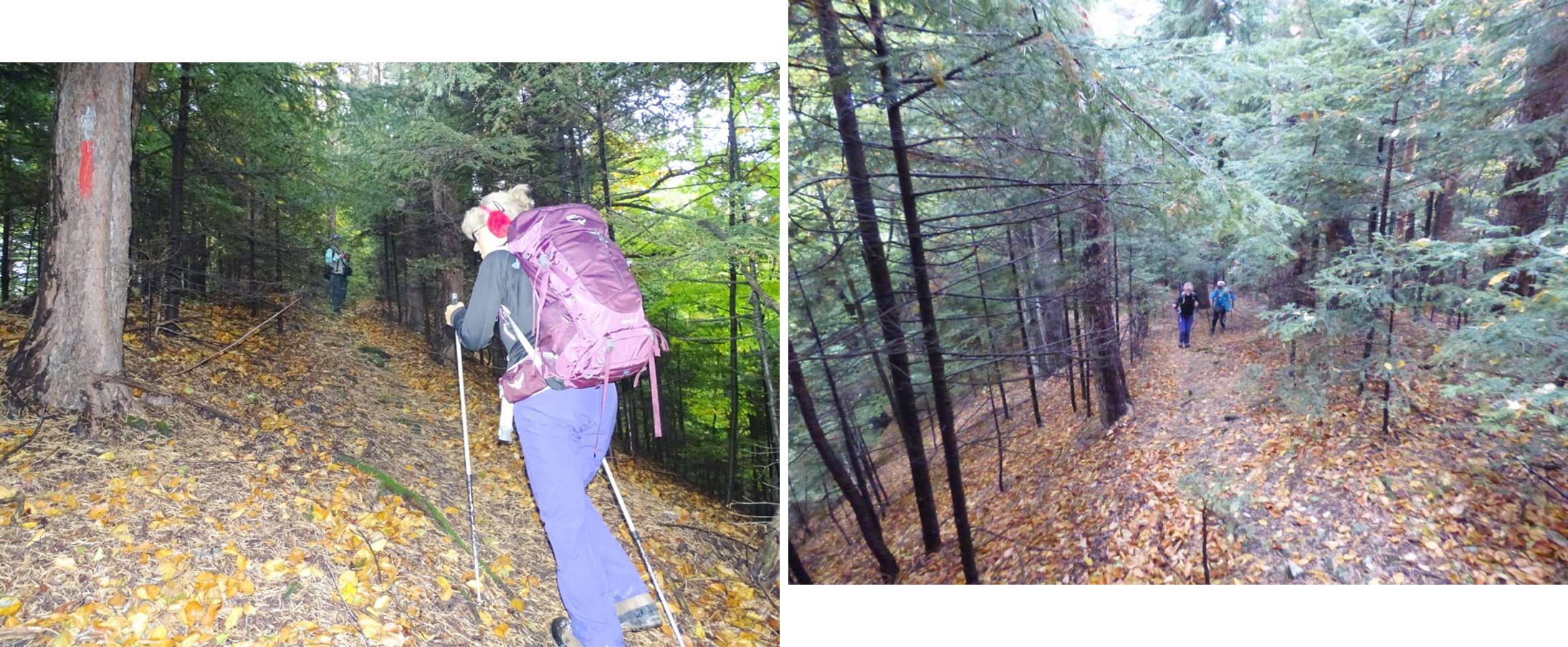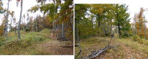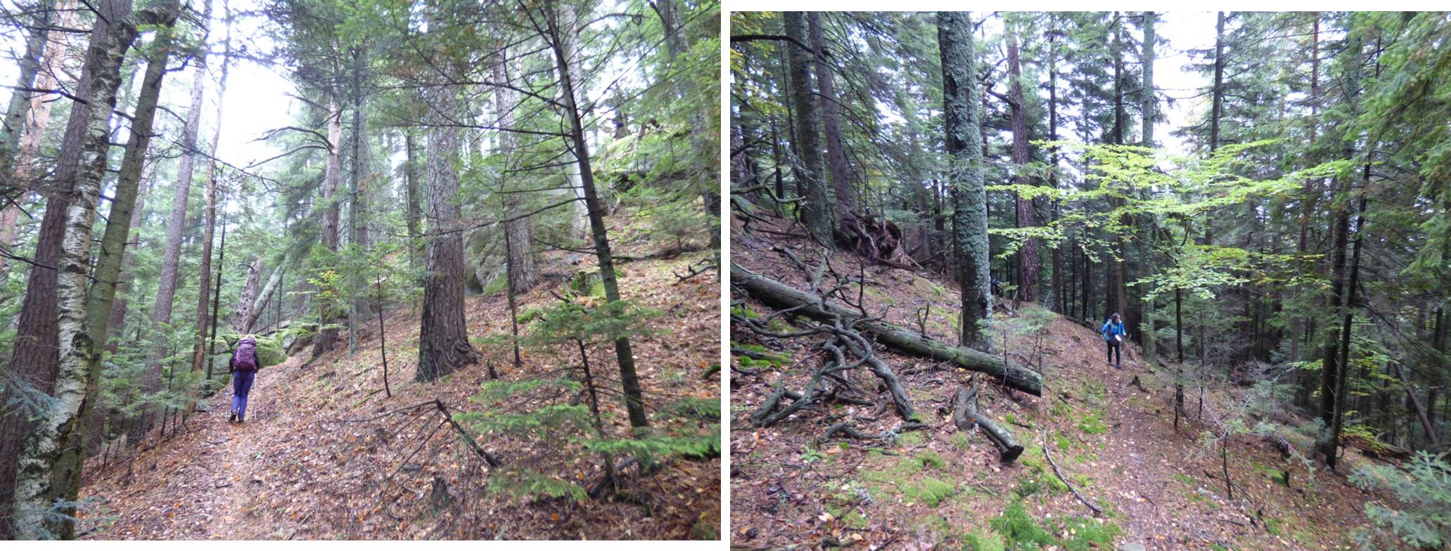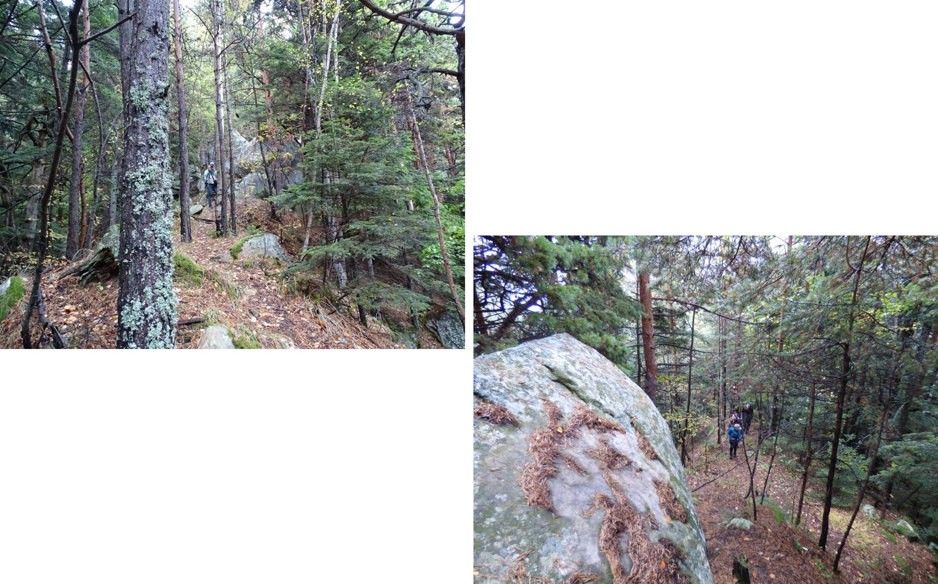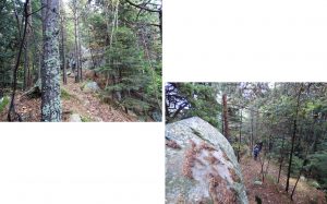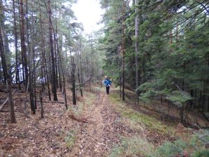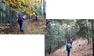 … nu mult timp, căci dăm peste un sector, unde culmea are un puseu altitudinal, greu de străbătut din cauza stâncăriei și a arborilor căzuți !