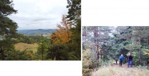 Dar, repede, abruptul estic se mai îmblânzește fiind acoperit și de pădure, iar creasta se mai lățește; …