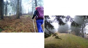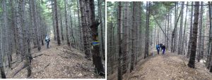 … și care ne readuce dup un scurt timp pe culmea principală unde reîntâlnim marcajele silvice: “H”-ul roșu precum și banda galbenă.