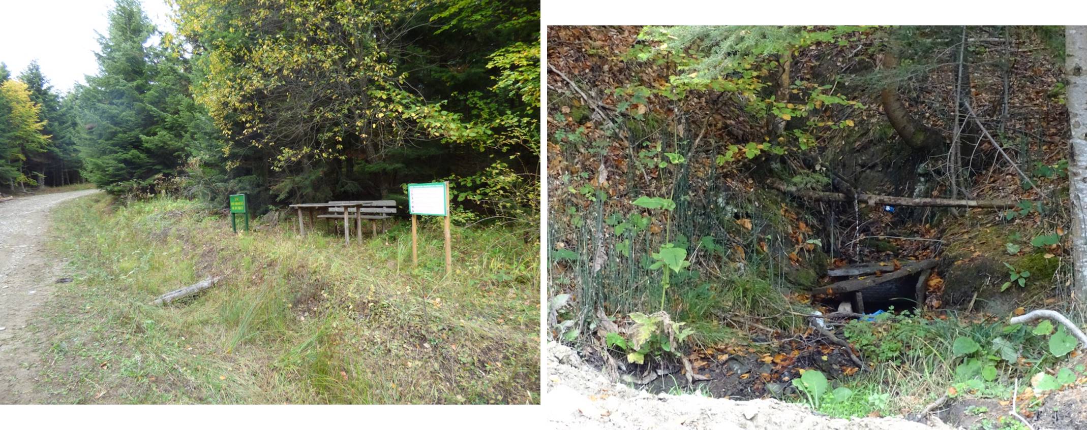 … vizavi de el fiind un monument a cărui placă, ce consemna probabil rostul lui, a fost distrusă. Pe el vedem însă urma fostului marcaj “bandă roșie”, precum și pe cea a celui nou, “punct albastru”.