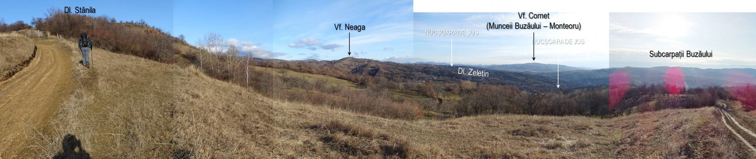 Apar primele vederi mai largi; beneficiem doar de semiorizontul nord-sud, între Dealul Neaga și Dealul Mierlei, acesta din urmă ținând de Subcarpații Buzăului.