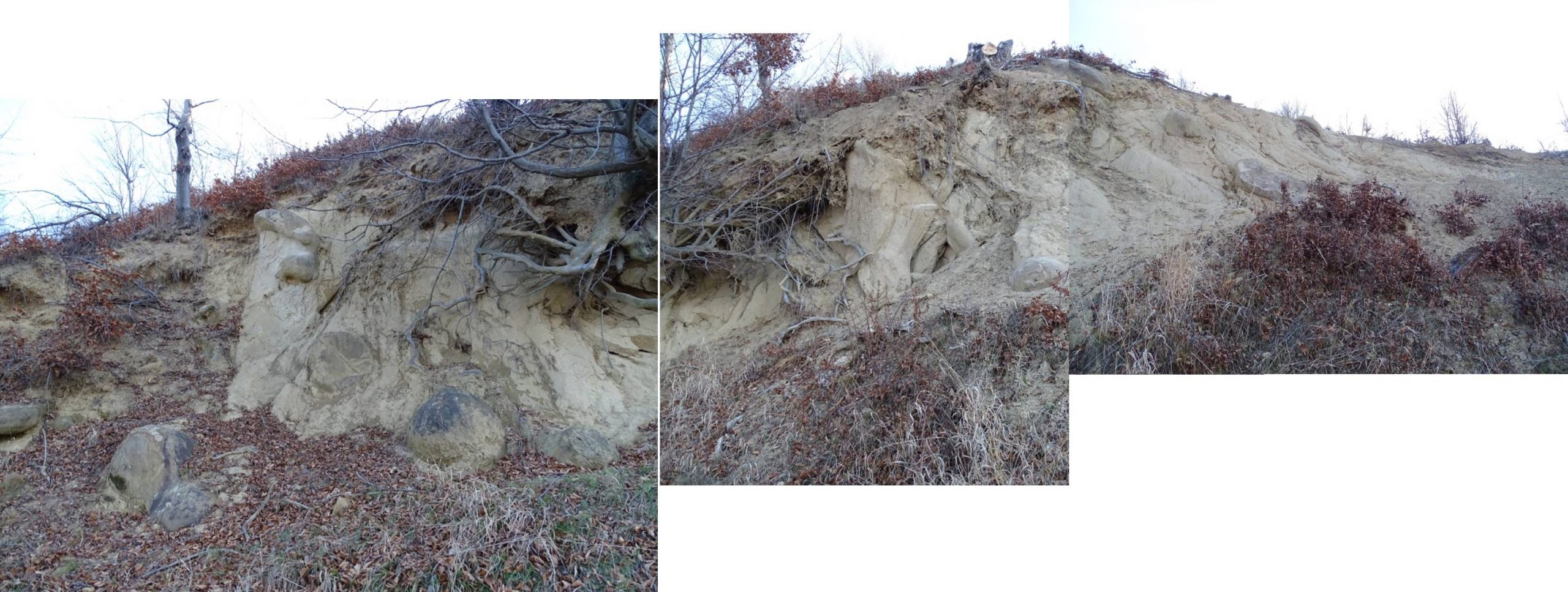 Însă un zoom pe ea ne atrage atenția asupra altui gen de … mister: grupul de trovanți înfipți în coasta dealului !